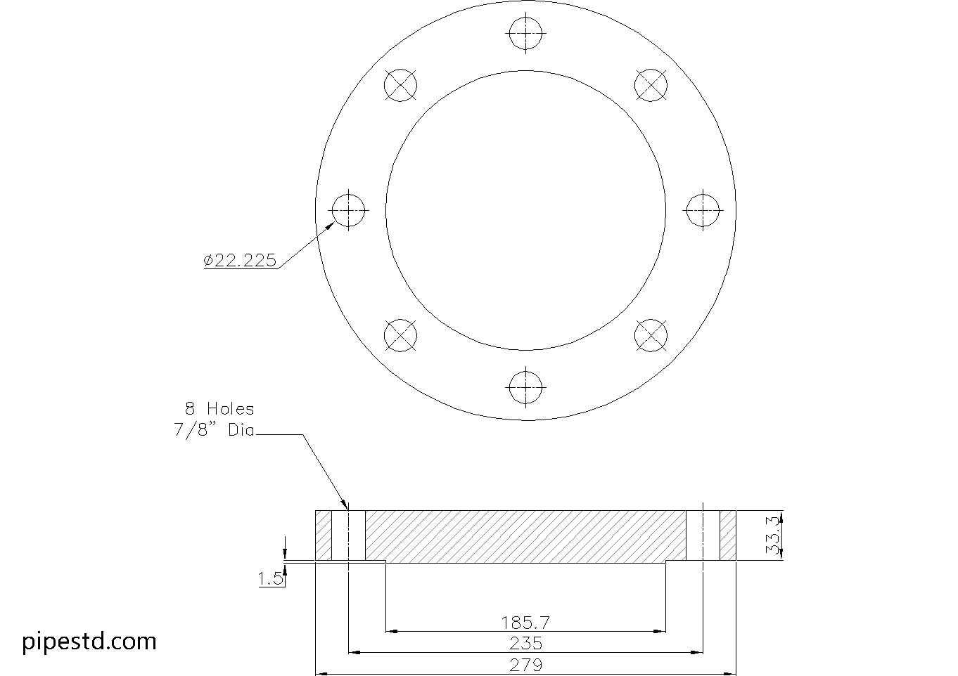 - Flange Thickness: 33.3mm