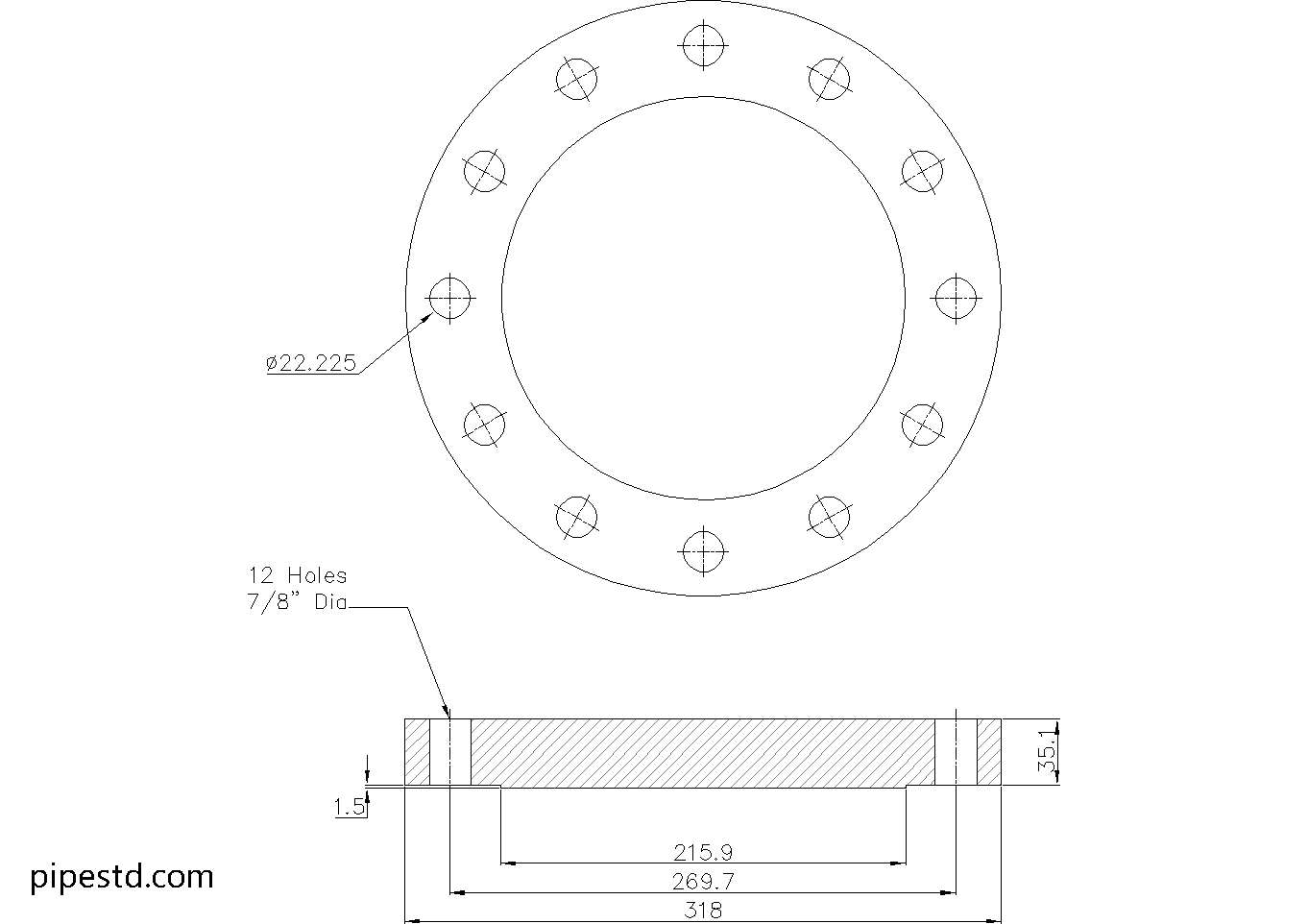 • Flange Thickness: 35.1mm