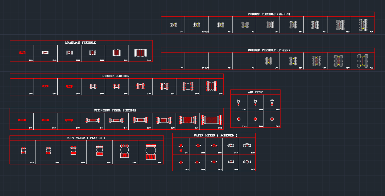 PVC Pipe And Fitting Dynamic CAD Block include Elbow 45, Elbow 90, Ts Socket, Ts Valve Socket, Ts Faucet Socket, Socket, Reducing Socket, Tee Way, Tee And Y-way for plumbing. read more…