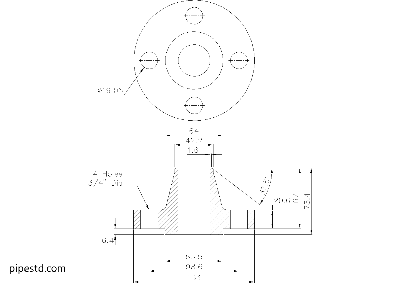 Weld Neck Flange 1 1/4″ Class 600 Dimensions
