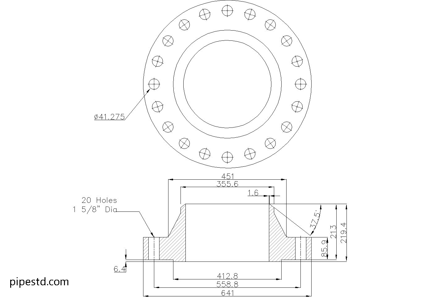 This size is part of the Weld Neck Flange Class 900 series. Check other sizes in the same category to find matching dimension data and CAD files for your project.