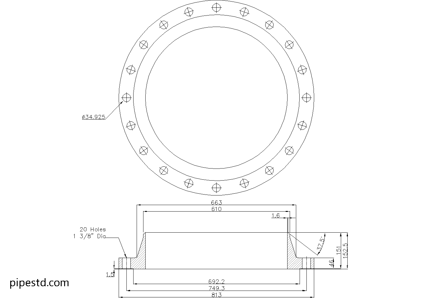 This dimension data is based on ANSI / ASME B16.5-2020.