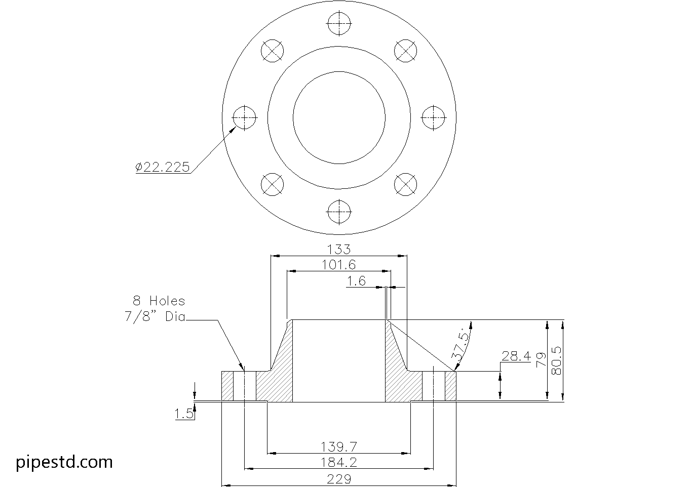 Weld Neck Flange 3 1/2″ Class 300 Dimensions