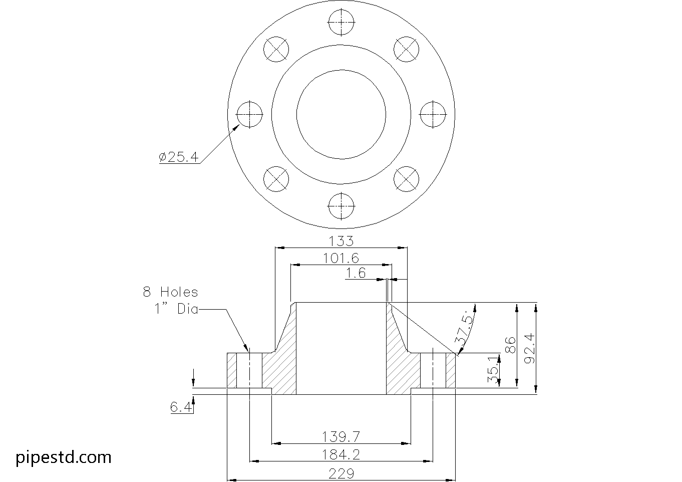 Weld Neck Flange 3 1/2″ Class 400 Dimensions