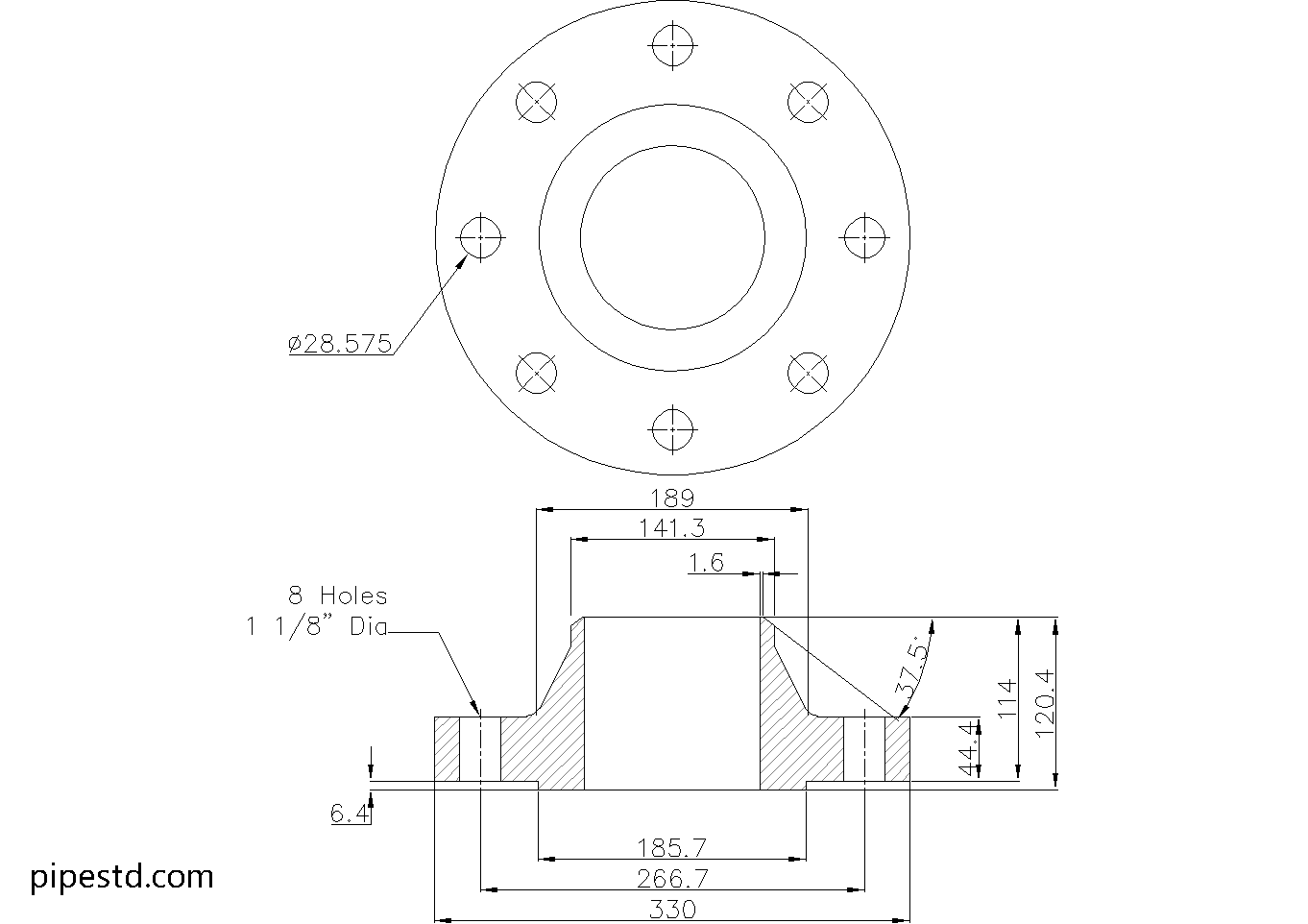 This dimension data is based on ANSI / ASME B16.5-2020.