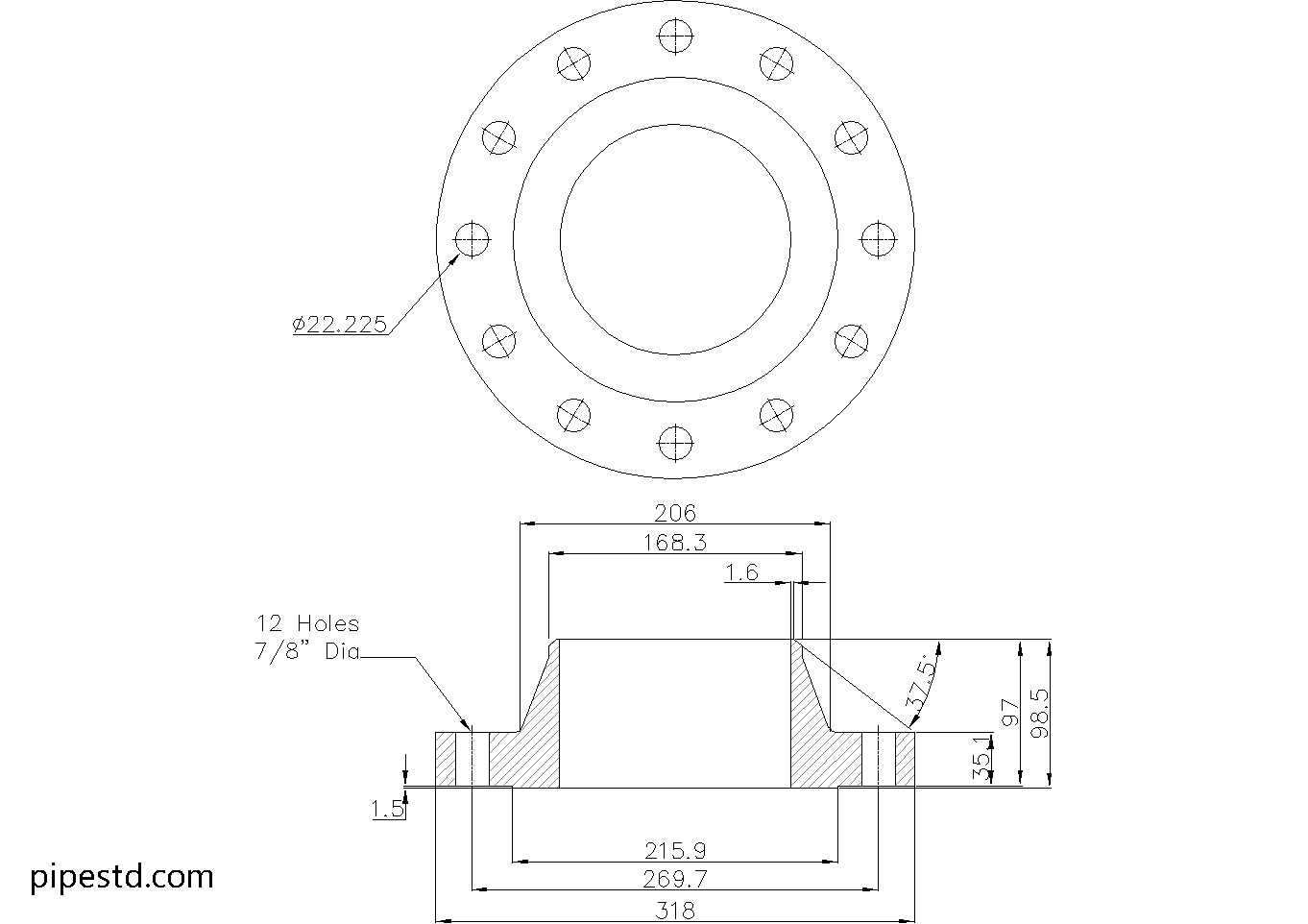 • Raised Face Diameter:215.9mm
